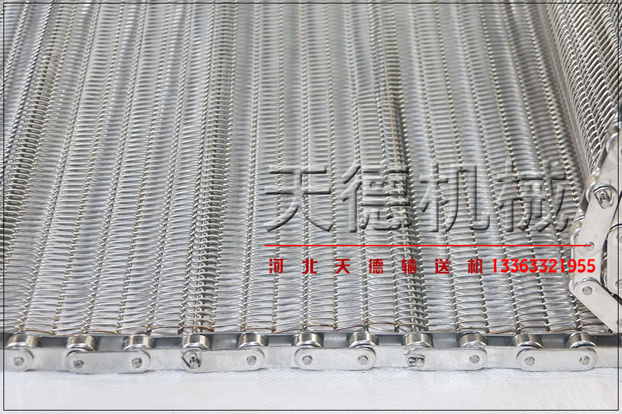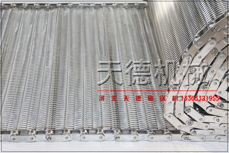 2、抗拉申能力很強 傳統式的網帶,靠兩邊滾桶竭盡全力繃緊輸送帶,充分保證輸送帶的運轉,這也使得金屬輸送帶在承擔被運輸物料作用力的前提下,還需要承擔機器設備自身的抗拉力,金屬輸送帶容易損壞毀壞,而推桿式不銹鋼網帶,將機器設備抗拉力分散化給傳動鏈條和支軸來承擔,使輸送帶在只承擔被運輸原材料作用力的情形下運作,進而增強了輸送帶的使用壽命。