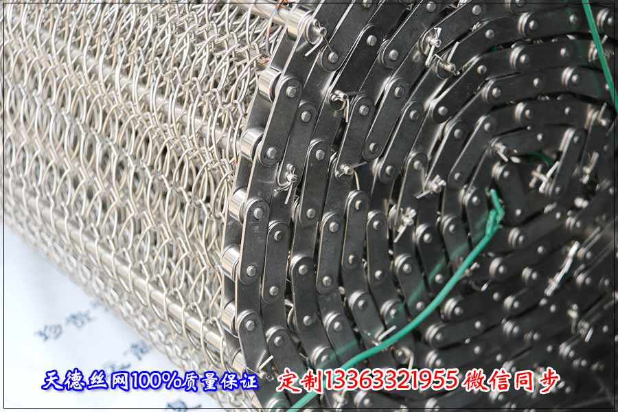 鏈條網(wǎng)帶簡(jiǎn)介:鏈條式網(wǎng)帶是由鏈條驅(qū)動(dòng)的輸送網(wǎng)帶,一般都由鏈條帶動(dòng)小軸再帶動(dòng)網(wǎng)帶運(yùn)行。 網(wǎng)帶都采用軋牙串條、左右網(wǎng)條二根串,并大小網(wǎng)條連接而成,大網(wǎng)條內(nèi)穿進(jìn)小軸,小軸二端穿入鏈條孔,從而達(dá)到鏈條驅(qū)動(dòng)輸送網(wǎng)帶。鏈條網(wǎng)傳動(dòng)平穩(wěn)、傳動(dòng)力矩小。