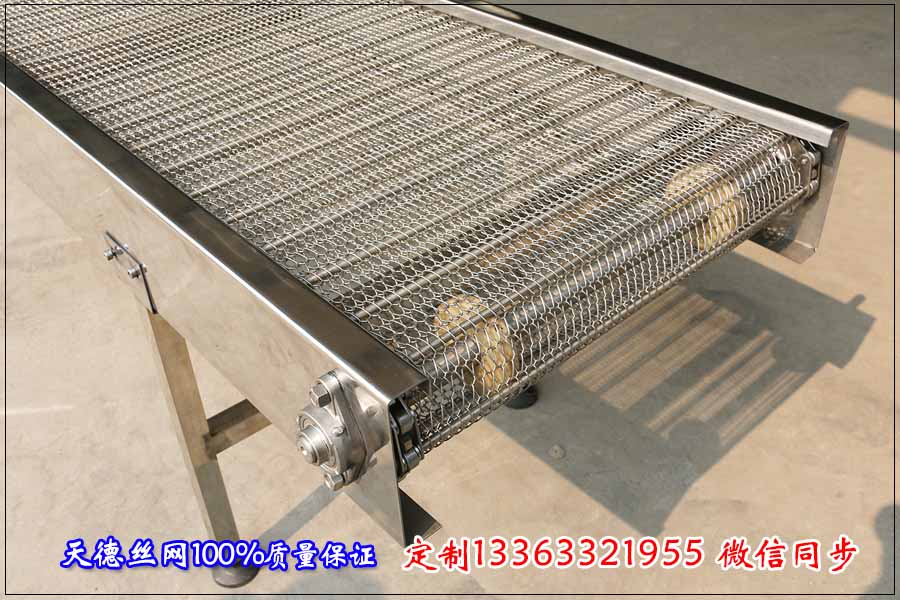 二、不銹鋼網(wǎng)帶輸送機使用前須檢查各運轉部分、膠帶搭扣和承載裝置是否正常,防護設備一定要準備齊全。不銹鋼輸送帶的漲緊度要在啟動前調整至合適的水平。