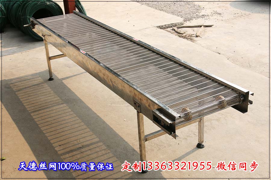 輸送機的材質有:碳鋼、201不銹鋼、304不銹鋼, 輸送機的寬度、長度、平面輸送、平面轉彎、提升、下降等要求定做。 網帶輸送機主要應用于食品、重工、藥品、化工等行業。鏈板可根據需要選用相應材質和寬度的鏈板。選用不同形式的平板鏈,可實現平面輸送、平面轉彎、提升下降等各種功能。電機可根據需要設置在機架上、下面或機架側面。