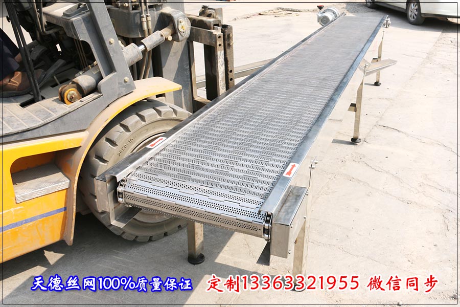 河北天德絲網制品有限公司生產鏈板輸送機、輸送鏈板、轉彎輸送機、轉彎鏈板輸送帶:13363321955 http://m.vancoo.com.cn/