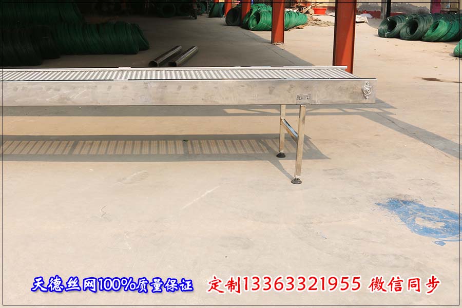 如果輸送物料體積大 、密度大那就要在網帶下方加裝軌道支撐;如果輸送線比較長的話把網帶輸送機分節來制作而不能做成一條輸送線,因為網帶輸送機超過 30米的話輸送網帶在牽引力下延伸率太大,造成輸送機脫軌或者跑偏。 隨著網帶輸送機優點的突出使用領域也越來越廣泛,像現在環保行業、 污水處置行業也很多的用到網帶輸送機。